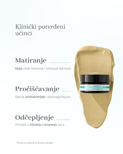 Volcanica is more than a clay mask. The product is made from a combination of high-quality clays (bentonite + silt), and the hydro-glycerin base makes Volcanica creamier and significantly less drying than classic clay masks. The creamy texture with relatively low viscosity cleanses pores and soothes inflamed skin while preserving the barrier function without the usual dryness and tightness.