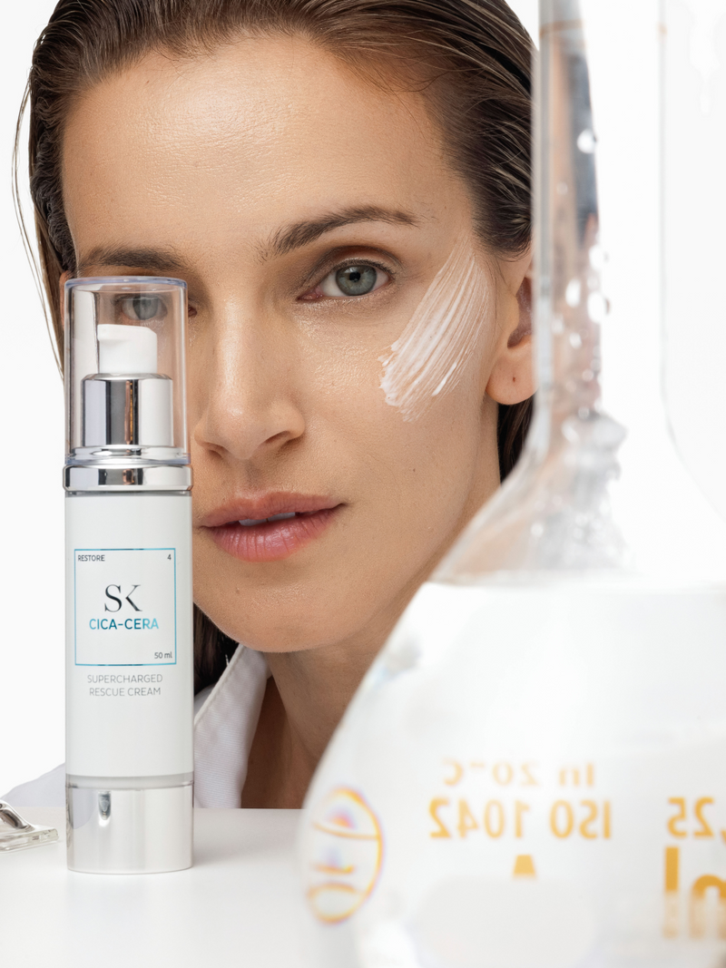 Neben Ceramiden gibt es in dieser Formulierung auch den CICA-Komplex (Centella asiatica, Madekasozid, Madekasinsäure, asiatische Säure), der eine beruhigende Wirkung auf die Symptome gereizte Haut hat wie z. B. (Dermatitis, postinflammatorisches Erythem, Akne, geschädigte Haut).