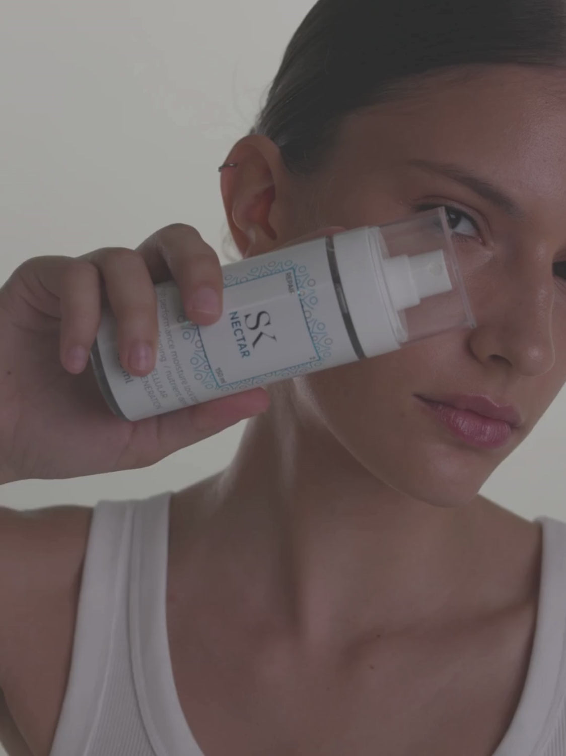 Nachdem Sie das Gesicht gründlich gereinigt haben, richten Sie die Flasche Nectar auf das Gesicht und tragen Sie mindestens 3, optimalerweise 6 Pumpstöße des Produkts auf. Setzen Sie die Pflege sofort mit Ihren Lieblingsseren und -cremes fort.